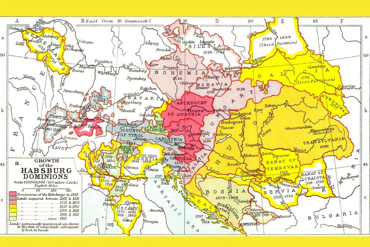 Bild: Den habsburgska monarkins expansion i centrala Europa.