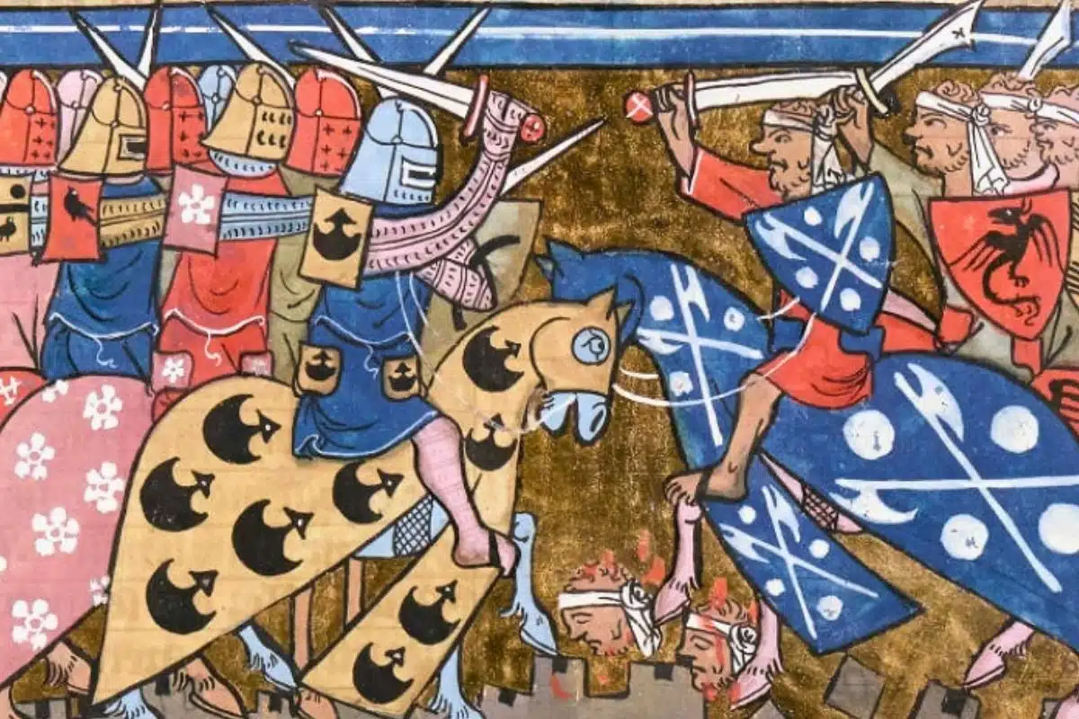 Bild: Denna miniatyr illustrerar en av striderna under det andra korståget av Ludvig VII, som kom kungen av Jerusalem Baldwin III till hjälp mot saracenerna, i mitten av 1100-talet. – William av Tyrus, History of Outremer, 1300-talet, Paris, BnF, Institutionen för manuskript, franska 22495 fol. 154v. Wikipedia, Public Domain.