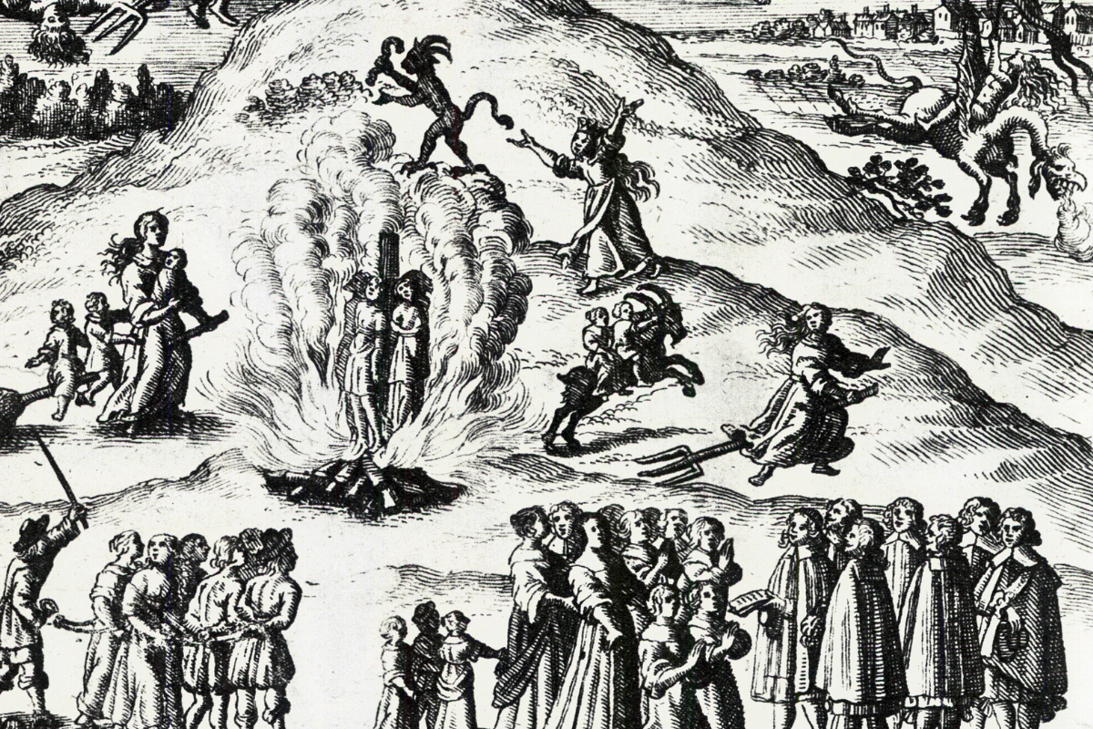 Bild: Häxprocess i Mora, 1670.Tyskt kopparstick som dramatiskt skildrar rättegångarna mot påstådda häxor. I förgrunden syns djävlar och häxor; ovanför dem sitter förhörskommissionen med kvinnor och barn som avlägger vittnesmål. En fångknekt driver fram fängslade häxor och trollkarlar. Runt bålet där de dömda brinner, bortför häxor barn på sopkvastar, bockar och dynggrepar, medan demoner i djurskepnad tumlar genom luften.