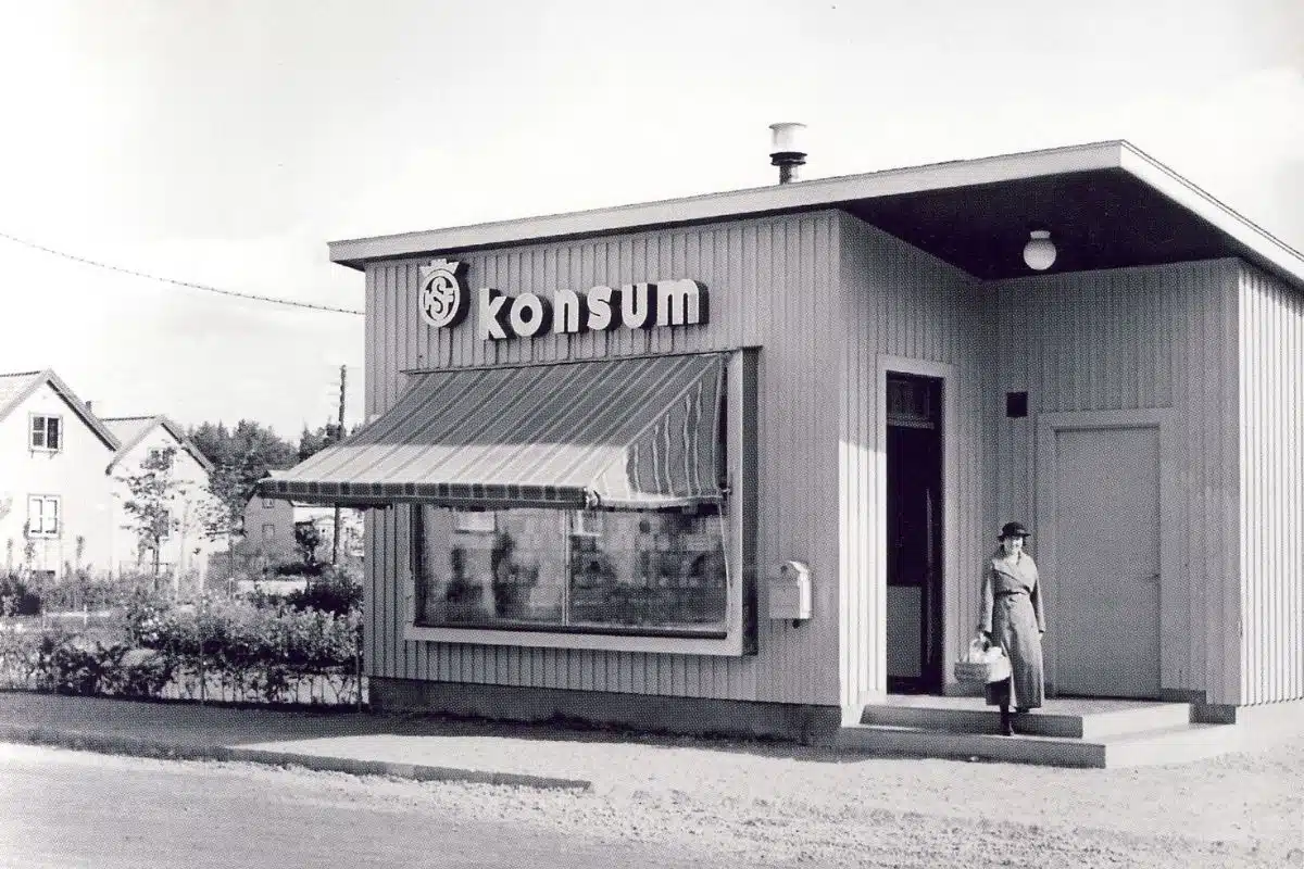 Bild: Konsumbutik i Svedmyra 1934. Okänd – KF:s arkiv Konsum-butik i Svedmyra i Stockholm, Wikipedia, Public Domain.