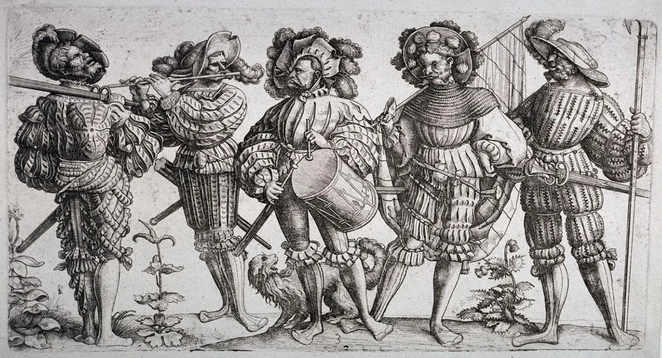 Bild: “Die fünf Landsknechte“ av Radierung von Daniel Hopfer, från 1530