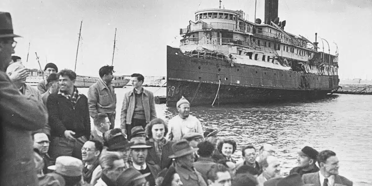 Bild: Judiska flyktingar anländer till Haifa, Wikipedia, Public domain