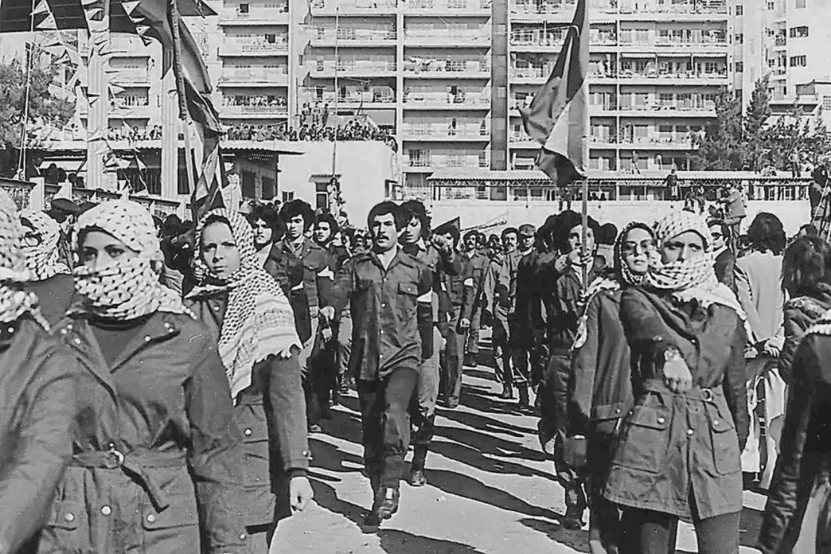 Bild: Fedayeen från Fateh vid en demonstration i Beirut, Libanon. Original av Tiamat, Crop, cleanup and re-up av Jaakobou, Wikipedia, CC BY-SA 3.0.